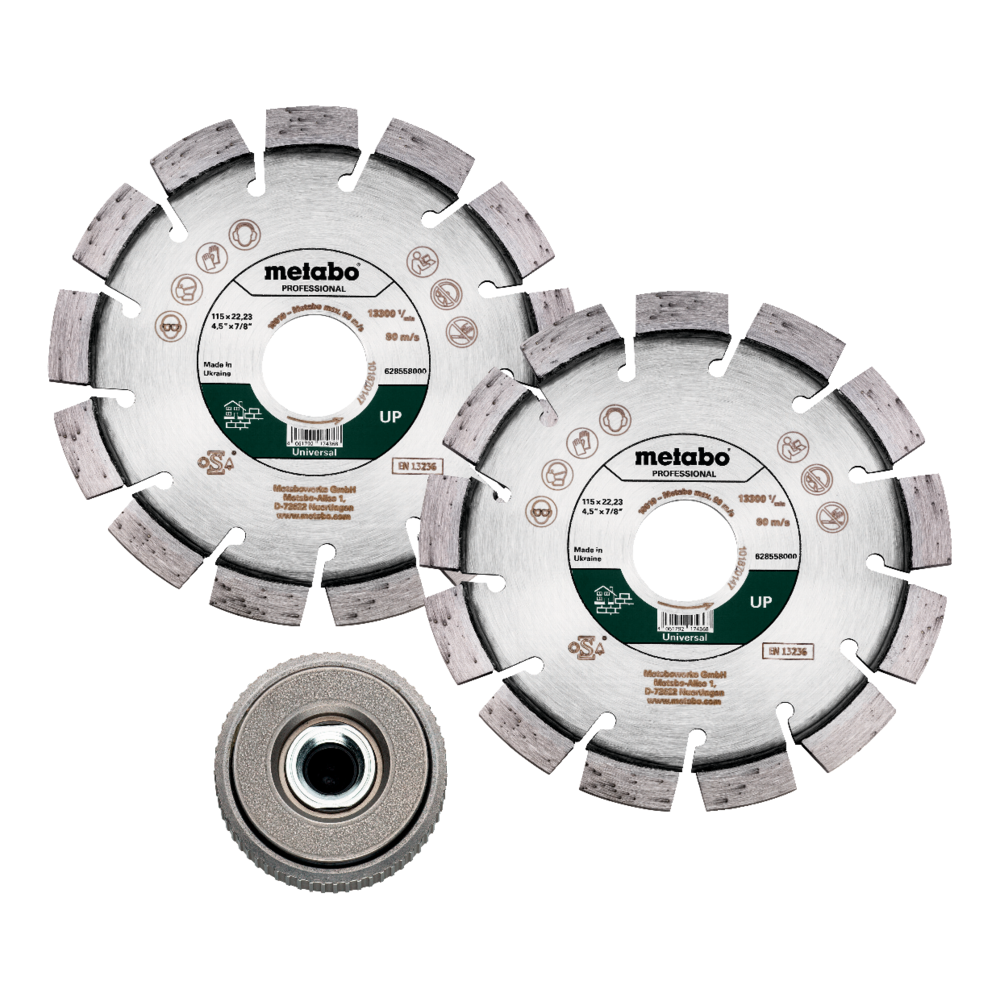 Set : 2 x meules de tronçonnage diamantées 115x22,23mm, « UP » + 1 x écrou de serrage rapide M 14 (628581000)