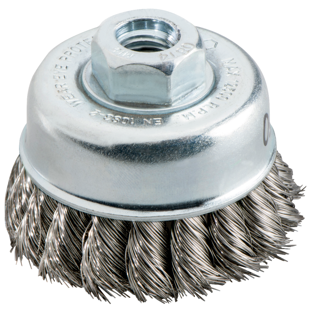 Spazzole a tazza con fili d’acciaio, acciaio intrecciato