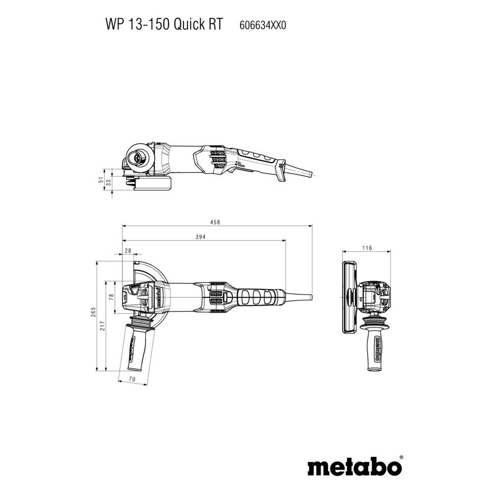 - Tool free, fast disc change at the touch of a button with the Metabo M-Quick-System