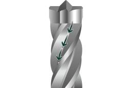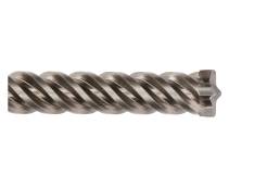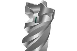 • Cabezal perforador de metal duro macizo extremadamente robusto y agresivo, 4 filos para una durabilidad y resistencia extraordinarias al perforar en hormigón armado