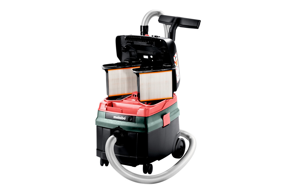 - Dos cartuchos de filtro de poliéster con gran superficie de filtrado para un poder de aspiración constatemente alto