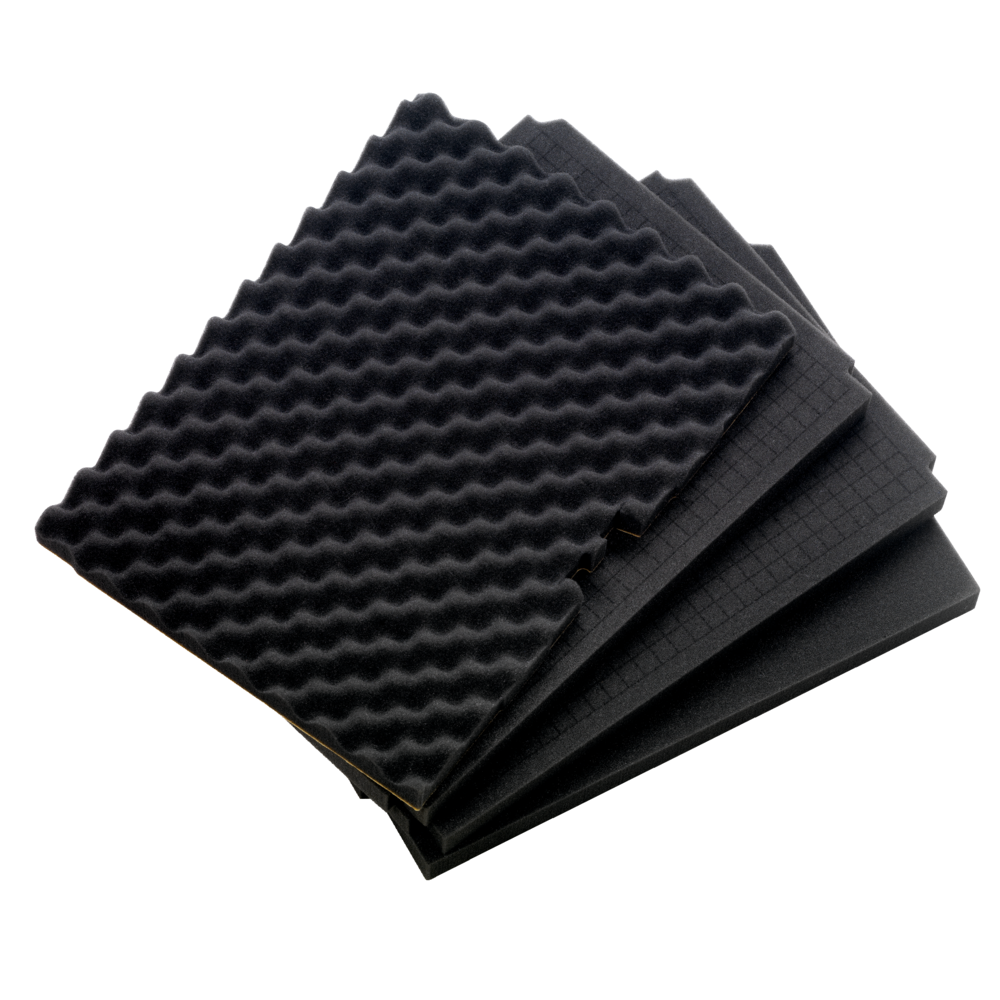 - Set de 4 pièces composé de : mousse à picots adhésive pour le couvercle (25 mm), 1 mousse sans perforation et 2 mousses avec perforation (16 x 16 x 25 mm)