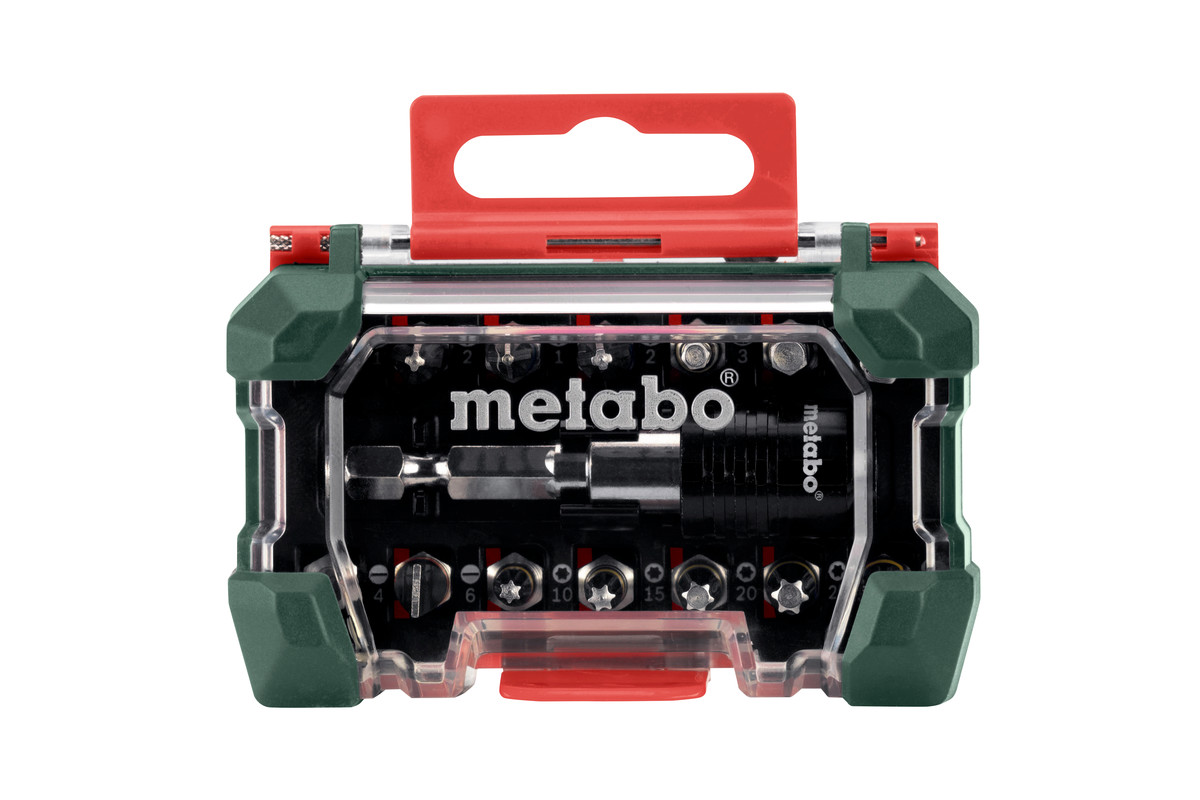 • Embouts en acier chrome vanadium (qualité S2) ; embouts avec code couleur : pour trouver rapidement et facilement l'embout adéquat ; adaptateur magnétique à changement rapide ; coffret robuste et de qualité supérieure avec design spécial Metabo ; suspension Euro amovible