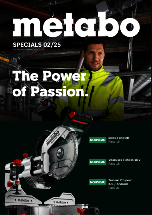 Dans le catalogue général Metabo, vous trouverez des informations sur toutes les machines et leurs accessoires.