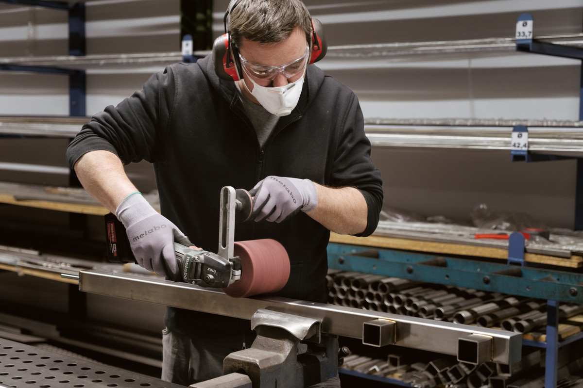 • Satineuse sans fil compacte pour le ponçage, le satinage, le brossage et le polissage miroir par exemple de l'acier inoxydable