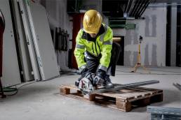 - Nagy húzóerejű akkus fém kézi körfűrész forgácsgyűjtő dobozzal fémek hideg fűrészeléséhez. Kompatibilis a vezetősínekkel.