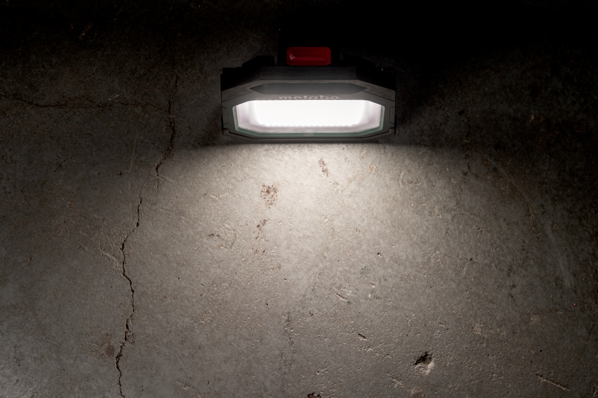 - Galingas 10 000 liumenų įkraunamo akumuliatorinis statybinis prožektorius dideliam plotui ir vienodam darbiniam apšvietimui metant mažą šešėlį