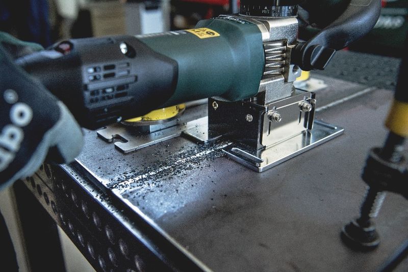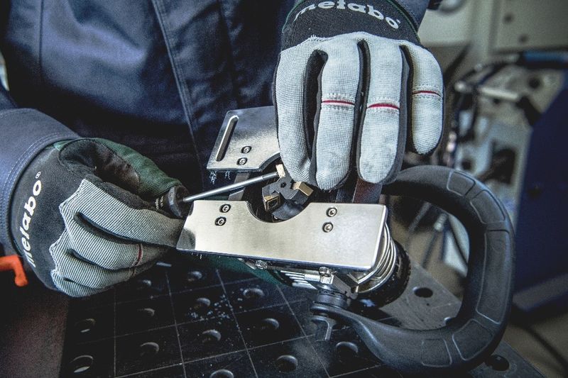 De machine valt ook op door de gebruikersbescherming: bij het vlakfrezen ontstaan kleine metaalspanen en dus geen gezondheidsbedreigend metaalstof – de spanen kunnen heel eenvoudig van het werkblad worden geveegd. Met de nieuwe vlakfrees kunnen lasrupsen tot een breedte van maximaal 25 mm en een hoogte tot wel 6 mm worden verwijderd. Bovendien kunnen gebruikers inkepingen binnen 2 minuten frezen. En met de gepatenteerde One-Touch-Control kan de freesdiepte heel eenvoudig in stappen van 0,1 mm worden ingesteld. Tot de leveringsomvang behoort ook een magnetische geleiderail – deze kan in een handomdraai en zonder gereedschap worden vastgezet en is dus onmiddellijk gebruiksklaar. Dankzij de slanke greep en de zonder gereedschap te verstellen beugelgreep ligt de machine altijd zeer stevig in de hand en kan perfect worden begeleid. „Onze nieuwe machine maakt het werk voor de gebruiker over de hele linie veel gemakkelijker – zo kunnen ook de 4 keerbeitels op de freeskop gemakkelijk en snel worden verwisseld. En wie al een kantenfrees van Metabo heeft, kan de keerbeitels voor beide machines gebruiken“, aldus Katja Stark.