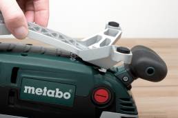 - Met langsgeleider voor een exacte geleiding van het werkstuk bij stationair gebruik