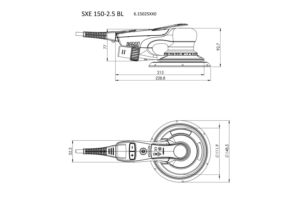 - Ekstra lett og flat eksentersliper med symmetrisk utforming for enkel bytte av hånd eller bruk med begge hender