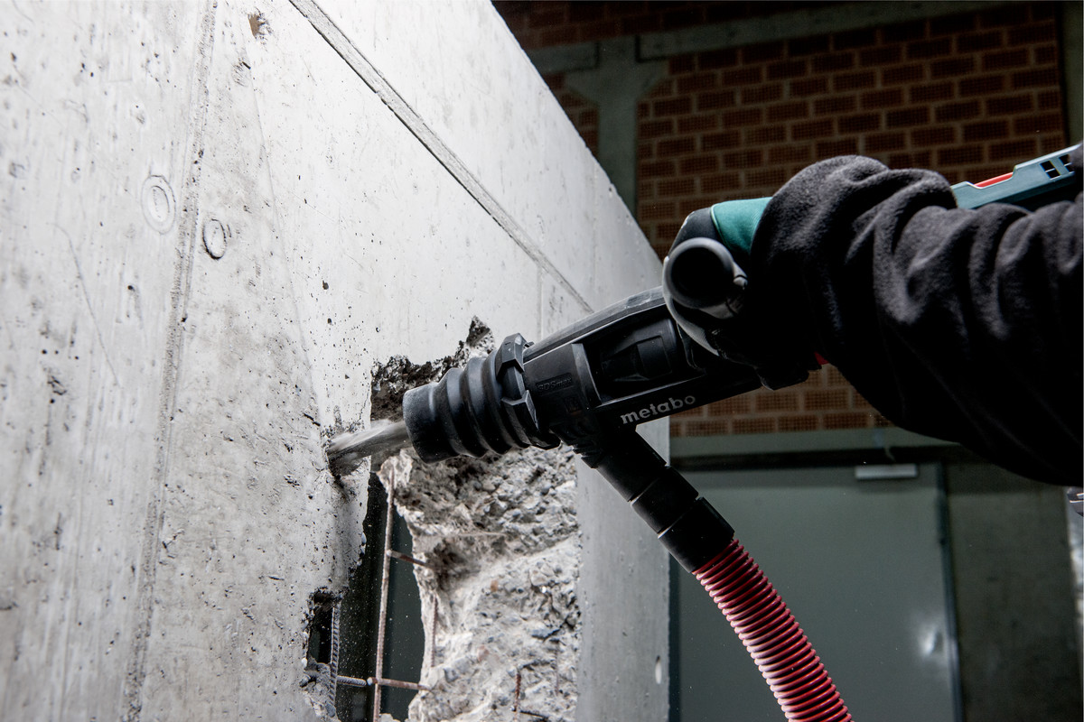 • For boring og meisling - med forskjellige fester: bor fra Ø 16-52 mm, spiss- og flatmeisler til 25 mm