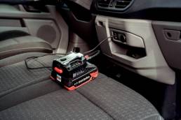 - En perfekt følgesvenn: Lader i lommeformat for 18 V-batterier med integrert LED-lys og powerbank-funksjon