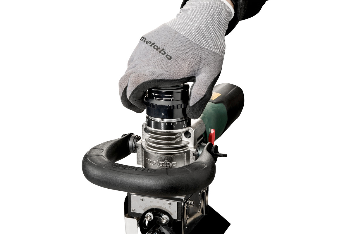- Sterownik One-touch: opatentowany sposób regulacji głębokości frezowania w skokach 0,1 mm bez użycia narzędzi; punkty zapadkowe skracają czas ustawiania i chronią przed niezamierzoną zmianą głębokości frezowania podczas pracy