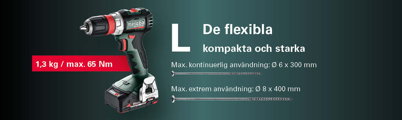 De batteridrivna borrskruvdragarna och slagborrmaskinerna på 18 volt i L-klassen är extremt korta och lätta och lämpar sig för alla vanliga borr- och skruvarbeten.