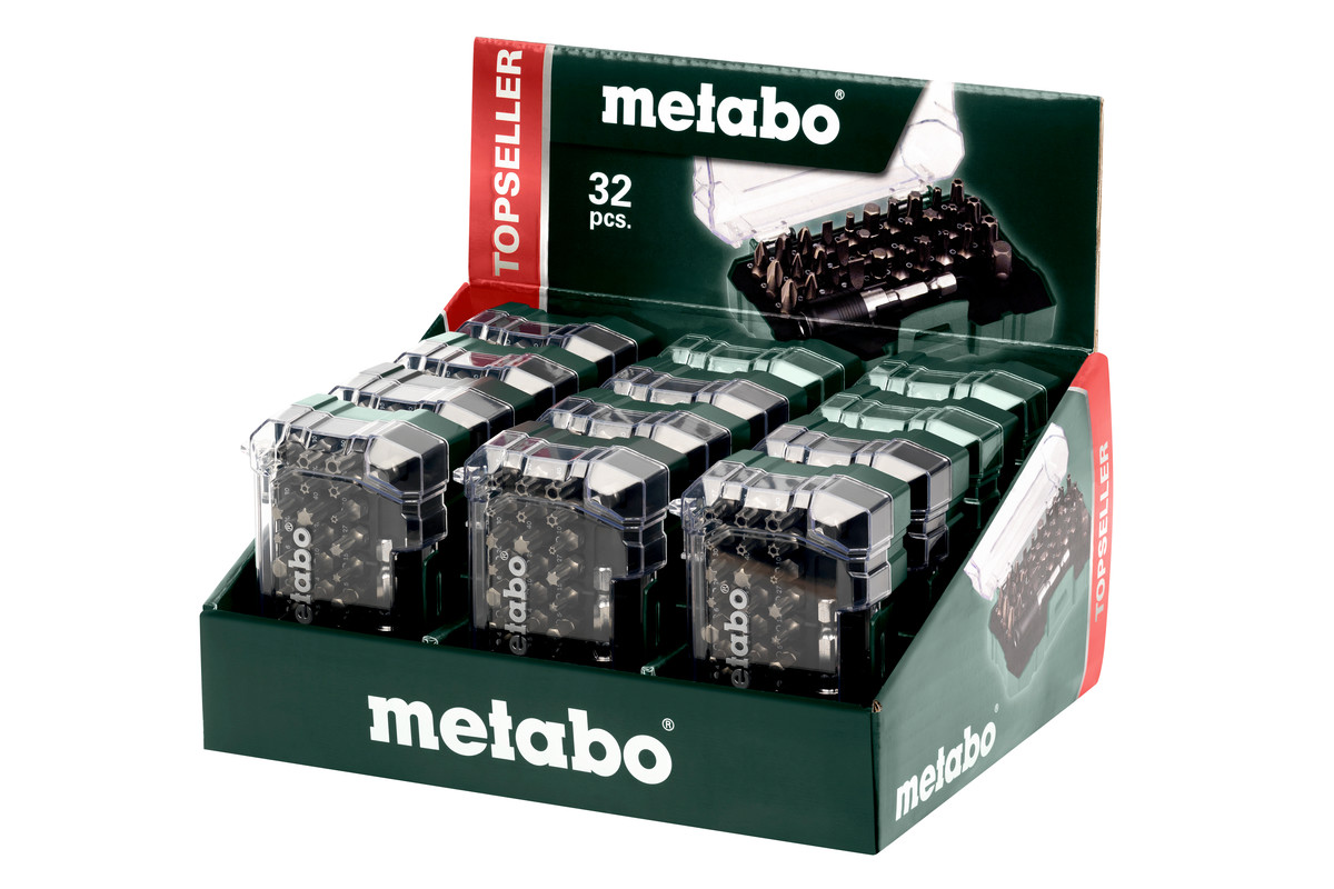 • Bity z chróm-vanádiovej ocele (kvalita S2), magnetický držiak bitov, s adaptérom pre nadstavce nástrčných kľúčov (šesťhranná nástrčná hlava), vysokokvalitný pevný box v špeciálnom dizajne Metabo