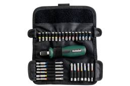 • Bity z chróm - vanádiovej ocele (kvalita S2); bity s farebným odlíšením: pre rýchle a jednoduché vyhľadanie vhodného bitu; magnetický rýchlovymeniteľný adaptér; kvalitný, robustný box so špeciálnym dizajnom Metabo s vyťahovateľným Euro-vešiakom; atraktívny predajný pútač
