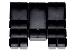 - Súprava pozostávajúca z: 4x boxy 1x1 H63 (52 mm x 52 mm x 63 mm); 5x boxov 1x2 H63 (104 mm x 52 mm x 63 mm); 2x boxy 2x2 H63 (104 mm x 104 mm x 63 mm); 1x box 2x3 H63 (157 mm x 104 mm x 63 mm)