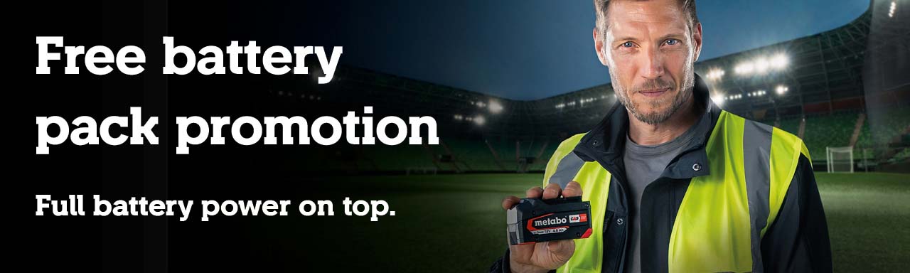 Choose a cordless tool now from the Metabo promotional product range, and receive a free battery pack.